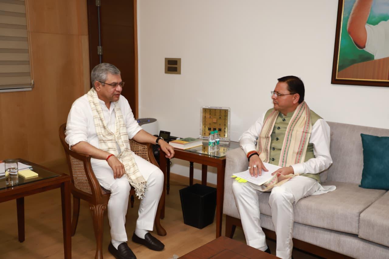 देहरादून : मुख्यमंत्री पुष्कर सिंह धामी ने बुधवार को नई दिल्ली में केन्द्रीय रेल मंत्री अश्विनी वैष्णव से भेंट कर उत्तराखण्ड में रेल अवसंरचना के विकास पर चर्चा की। इस दौरान मुख्यमंत्री ने देहरादून एवं हरिद्वार रेलवे स्टेशनों को आदर्श रेलवे स्टेशन के रूप में विकसित किए जाने के लिए दोनों रेलवे स्टेशनों के विस्तार/सुदृढ़ीकरण के साथ ही हरिद्वार-देहरादून रेल लाइन दोहरीकरण का कार्य केन्द्र सरकार द्वारा पूर्ण व्ययभार वहन करते हुए पूर्ण कराने का अनुरोध किया। केंद्रीय मंत्री ने हरिद्वार व देहरादून रेलवे स्टेशनों को आदर्श रेलवे स्टेशन के रूप में विकसित किये जाने पर सहमति देते हुए कहा कि हरिद्वार-देहरादून रेल लाइन दोहरीकरण के कार्य का पूर्ण व्ययभार केन्द्र सरकार द्वारा किये जाने के संबंध में परीक्षण कर उचित निर्णय लिया जाएगा।